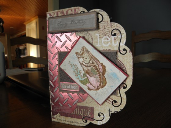 Well anyways I am off the subject like always. My brother is 5 years older than me. Although he has everything he needs or wants, he looks forward to his birthday card. He has many interests but likes to explore fishing in Marco Island florida often. Here is the card I created for him, because I appreciate everything he does for me. Thanks for checking in. Have a creative Day!!!